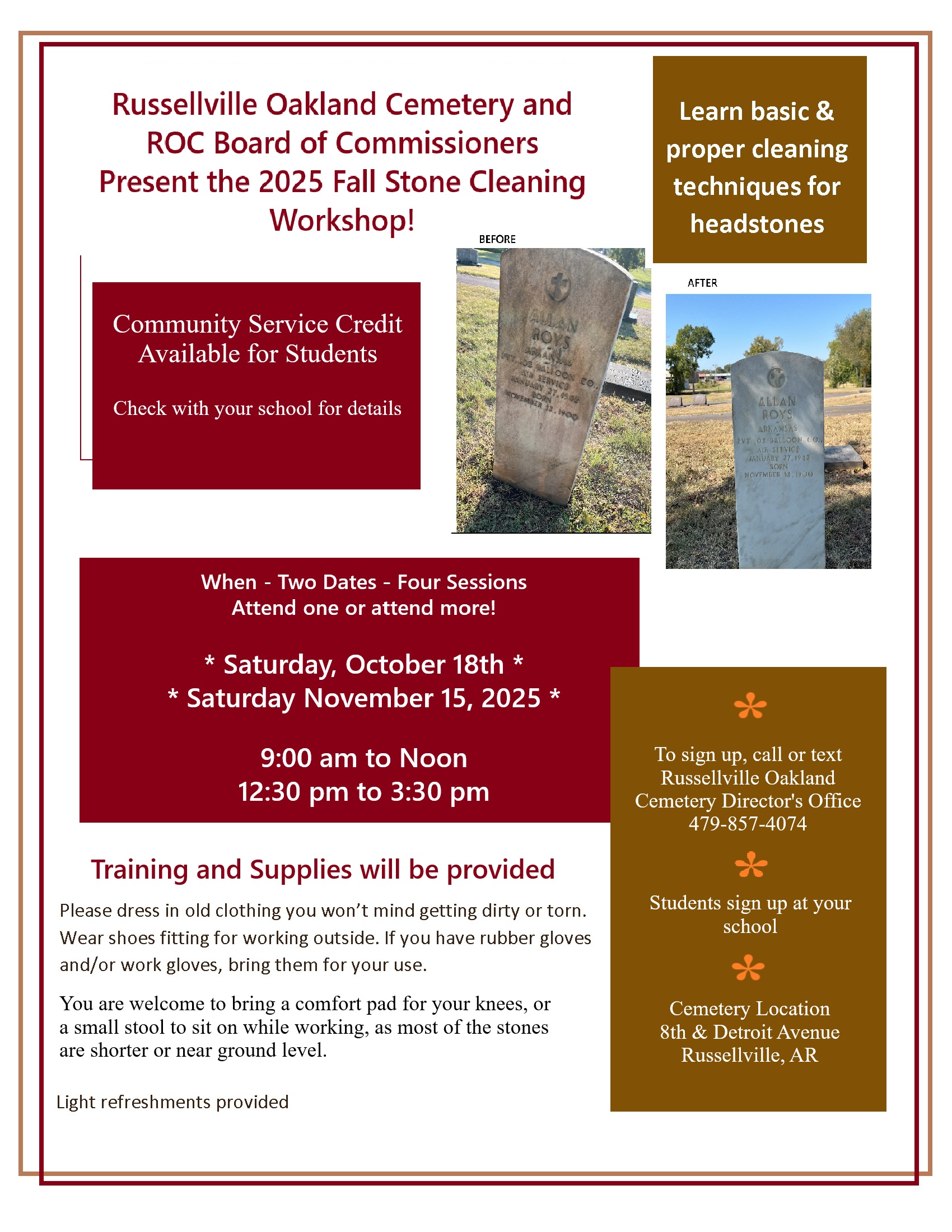 For 175 years Russellville Oakland Cemetery has been committed to service of the community and the final resting place for many of the area's residents.